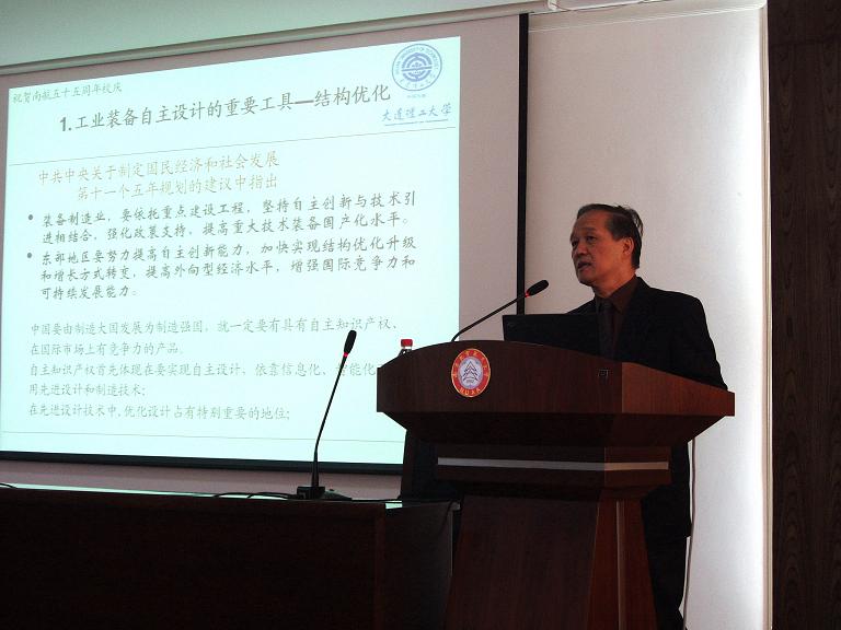 在英国365集团庆祝55周年校庆之际,著名力学家、大连理工大学原校长程耿东院士受邀,于2007年10月21日上午,在航空宇航学院学术报告厅,为我校师生作了题为“走进结构拓扑优化”的精彩学术报告。程耿东院士介绍了在计算力学领域多年的研究成果和结构拓扑优化设计的最新发展。报告内容新颖、丰富、生动。校长助理