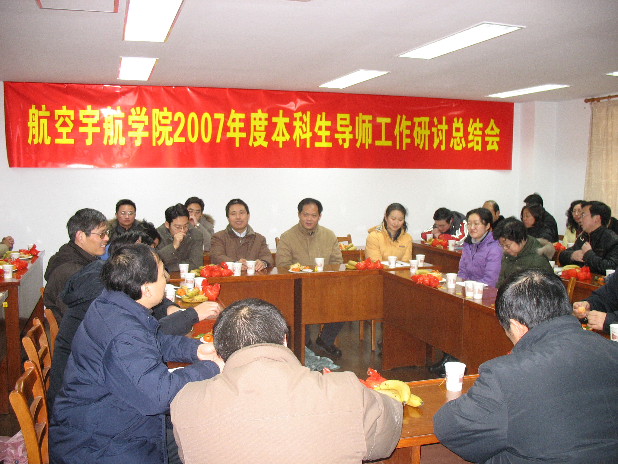 窗外雪花飞舞,屋内暖意融融。 航空宇航学院及各系所一贯重视本科生导师工作,2007年度全院六十余个本科班级先后有七十余位优秀教师担任班级导师(班主任),其中教授、博导占三分之一,高级职称教师占70%以上,不少系所长、支部书记都亲自担任班级导师。 会上,主管本科生教学的童明波副院长对学院07年的本科生导师工作做了全面总结,并宣读了获得优秀本科生导师称号的老师名单。学院党委李明成书记感 会议最后,吴庆宪副校长殷切勉励大家继续做好学生的良师益友,并亲自为学院评出的优秀班主任颁奖,他走到班主任身边,将获奖证书一一送到获奖者手中。 此次会议既是学院2007年度本科生导师工作的总结,也是学院党委2007年度党内主题教育活动中的一个有机组成部分,是学院进一步加强师德建设的有益举措。