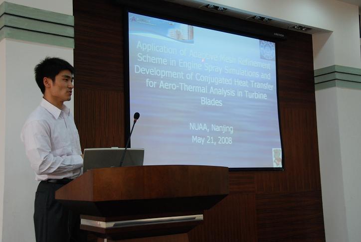 2008年5月21日下午,在流体力学楼学术报告厅,薛庆栾博士为我校师生作了题为“Application of Adaptive Mesh Refinement Scheme in Engine Spray Simulations and Development of Conjugated Heat Transfer for Aero-Thermal Analysis in Turbine Blades”的学术报告。报告介绍了多相流计算的发展方向,特别强调了气动燃烧过程的CFD模拟和气固耦合计算的应用,通过几个工程应用的例子,薛博士阐述了燃烧喷油过程模拟的重要性和相关问题,特别讲解了适应性网格计算加速工程设计的意义,引起了与会师生的浓厚兴趣,师生们就某些问题与薛博士进行了热烈的讨论。报告的内容是薛博士研究小组的最新成果,将对我校该领域的研究起到推动和借鉴作用。