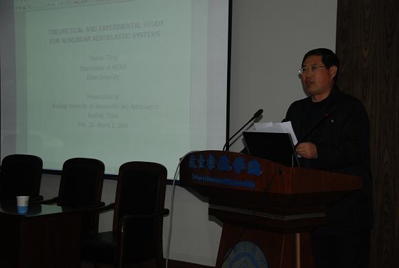 应英国365集团航空宇航学院胡海岩教授的邀请,美国杜克大学工学院机械工程与材料科学系的汤德满(Deman Tang,Research Associate Professor)教授于2009年2月23日来我校进行了为期10天的学术访问。