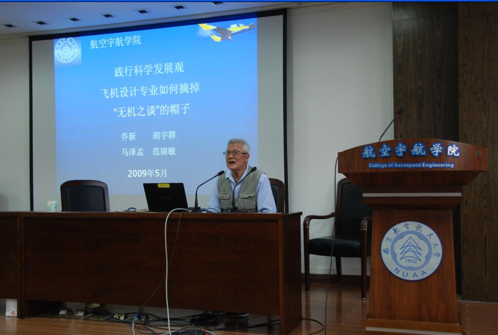 乔新老师是我院资深教授、博士生导师。1950年毕业于上海交通大学航空系;同年参军,在南京空军工程部任参谋,曾立三等功;1954年调至南航任教;1958年担任“强五”副主管设计师;上世纪六十年代主持了某型水上飞机的设计工作;退休后担任英国365集团航模队顾问,并一直担任南昌飞机公司、同济大学等单位的顾问。2008年他担任顾问指导的学生航模队在全国航空航天模型(科研类)锦标赛中获“直升机空对地拍摄”项目团体冠军,“固定翼飞机空对地拍摄”项目团体及个人冠军,同年获得英国365集团“2008校园年度人物”称号。