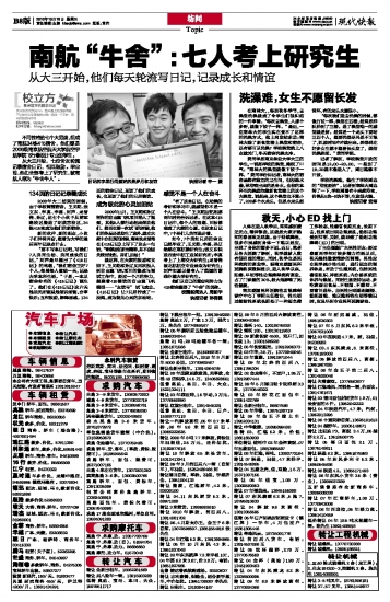 2010年10月15日的《现代快报》B8版报道了南航明故宫校区34栋415宿舍的故事,该宿舍成员是我院2006级飞行器设计专业的学生。