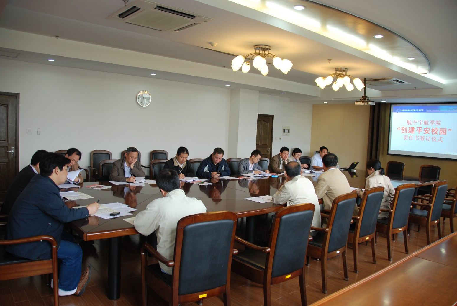 会上,李明成书记和赵宁院长与各系所负责人签订了《航空宇航学院安全稳定责任书》。