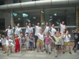 在这里的每一天都是充实快乐的,我们帮他们画了可爱的墙画,既是对自己绘画技术的挑战,也是一种新的尝试;我们教他们画了好多飞机,发现了很多有绘画天赋的孩子,上天是公平的,赋予了他们特别的才能;我们教他们折了各式各样的纸飞机,大家在操场上一起放飞纸飞机的那一瞬间,看到他们一个个兴奋惊喜的表情,我们知道飞天的梦想已经在他们心中播种;我们帮四个小朋友庆祝生日,在喂他们吃生日蛋糕时看着他们渴望的眼神,我们意识到,其实我们为他们做的,那么少;我们自己剪心愿纸写下我们对他们最真实的祝愿;向老师学习《感恩的心》的手语,不难,却是一场优美的舞蹈,伴着让人心有感触的旋律、变幻的手势,突然发现手语是如此的精致与神圣,那指向苍天的手势仿佛在说“生命给予我痛苦,我将还以你不屈!”是的,也许我们现在还不能给予他们什么更实质性的帮助,但是我们有爱,我们可以多陪陪他们,我们可以带给他们更多的欢乐和爱心。我们作为“传声筒”,作为他们与社会的媒介,希望有更多的人能够关爱他们,倾听他们的心声。这样,纵使前面路艰难,他们也一样可以走出漂亮的人生!