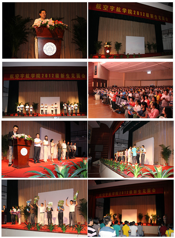 2012年9月10日上午9时,航空宇航学院在将军路校区艺术中心隆重举行2012级新生见面会,航空宇航学院全体院领导,李明成书记、赵宁院长、童明波副院长、朱春玲副院长、陈国平副院长出席见面会,院团委书记储瑾蓉,2012级辅导员卢一亭、朱航等也一同参加见面会。会议由院长助理王中叶主持。