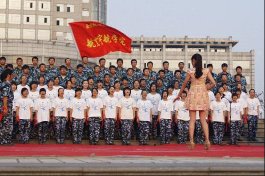 本次赛歌会中我院参赛曲目为《众人划桨开大船》,歌曲以划船为喻,展现了团结就是力量的主题,不仅是同学们学习军旅歌曲成果的展示,更是对同学们进行的集体主义教育。比赛中,女生着航宇院文化衫和军训迷彩裤,男生着军训迷彩作服,整齐的着装显示着航宇院同学昂扬的士气。同学们的演唱旋律坚强有力,声音洪亮统一,吐字清晰,表达感情真挚,富有感染力。除了震撼人心的演唱,我院合唱队精心设计的表演动作也极富吸引力,两组表演划船的同学动作协调有力,男生们振臂呼喊的雄厚之声回荡在广场上空,女生们手扎红飘带的手势表演干脆利落,赢得大家阵阵掌声。场下观众也密切配合,同台上同学积极呼应。最终,表演在“巍巍航宇,志在长空;灿灿群星,雄踞苍穹”的呐喊声中结束,观众热烈高呼“蓝天放歌,航宇飞扬;航宇之光,闪耀南航”,士气威武,震撼全场。