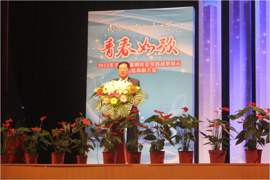 10月9日,“青春如歌”2012年大学生暑期社会实践成果展示暨总结表彰大会在明故宫校区新大学生活动中心剧场举行。在今年的社会实践工作中,我院成果丰硕。学院荣获社会实践工作先进单位,吴瑾、储瑾蓉、张利明、许俊勇四位老师荣获社会实践优秀指导教师,同时多个学生实践项目也荣获表彰。赵宁院长作为院长代表在表彰大会上就“从社会实践看全员育人”发表讲话。