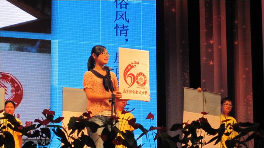 我院“光影南京・光影青奥”实践团队队长朱赫向大家讲述了一群追梦的年轻人制作青奥宣传片的青春故事;“展民俗风情,庆母校华诞”实践团队队长张梦雅向大家展示了一幅沙画――南航主楼、一份剪纸――校庆标志、一首评弹――《南航美》的实践成果。表彰大会的当日也是我校名誉校长钱伟长老人诞辰百年之日,我院“追随――寻访大师的足迹”实践团队队长苑博为大家讲述了钱老不平凡的一生,同时也带领钱伟长班的同学郑重宣誓,“永远铭记钱老那句肺腑之言‘力学报国此身轻’!”