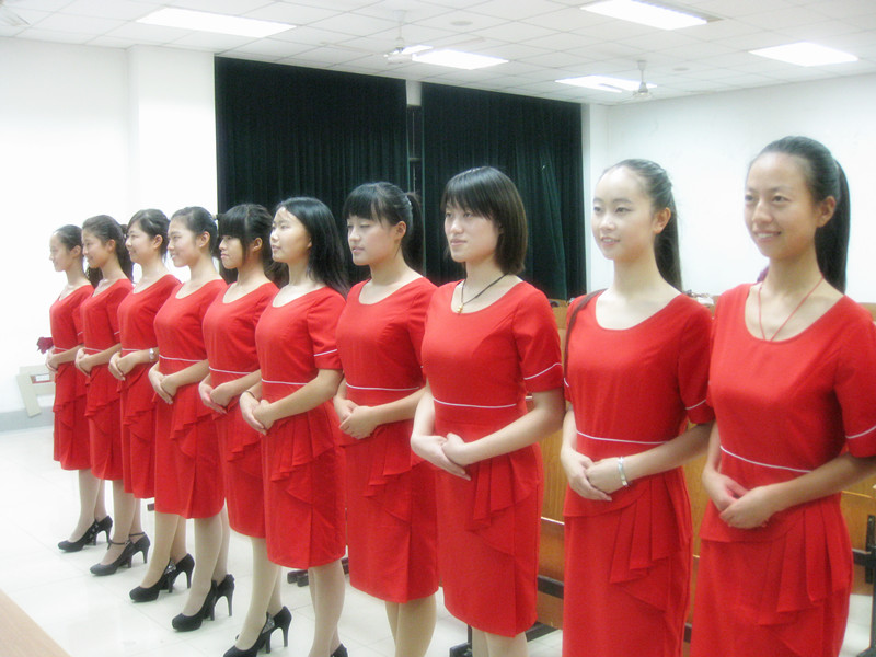 礼仪团成员系统学习了礼仪知识和简易化妆两部分内容。校礼仪队成员即耐心的讲述礼仪的小知识以及在生活中的作用外,还分别示范了礼仪活动中的站姿、坐姿、蹲姿、走姿,以及如何引领嘉宾上台颁奖,如何端茶斟水等实用技能。同时,还现场教授了淡妆的化妆技巧。