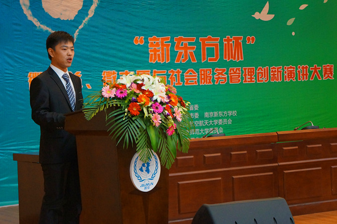 2012年11月19日晚,“新东方杯”微公益、微志愿与社会服务管理创新演讲比赛江宁片区赛圆满落幕,我院苑博同学代表学校参赛,并以片区赛第一名的身份顺利晋级决赛。