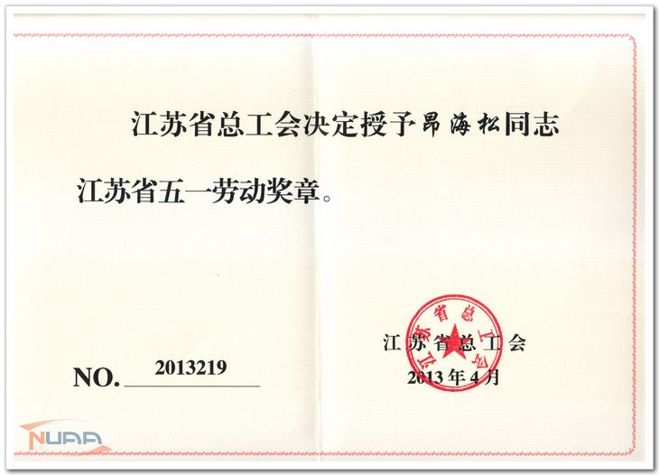 五一前夕,江苏省总工会通报表彰了荣获2013年江苏省五一劳动奖章、奖状的个人和集体,我校昂海松老师荣获江苏省五一劳动奖章,成为在宁高校大学教师获得2013年江苏省五一劳动奖章的3个先进个人之一。