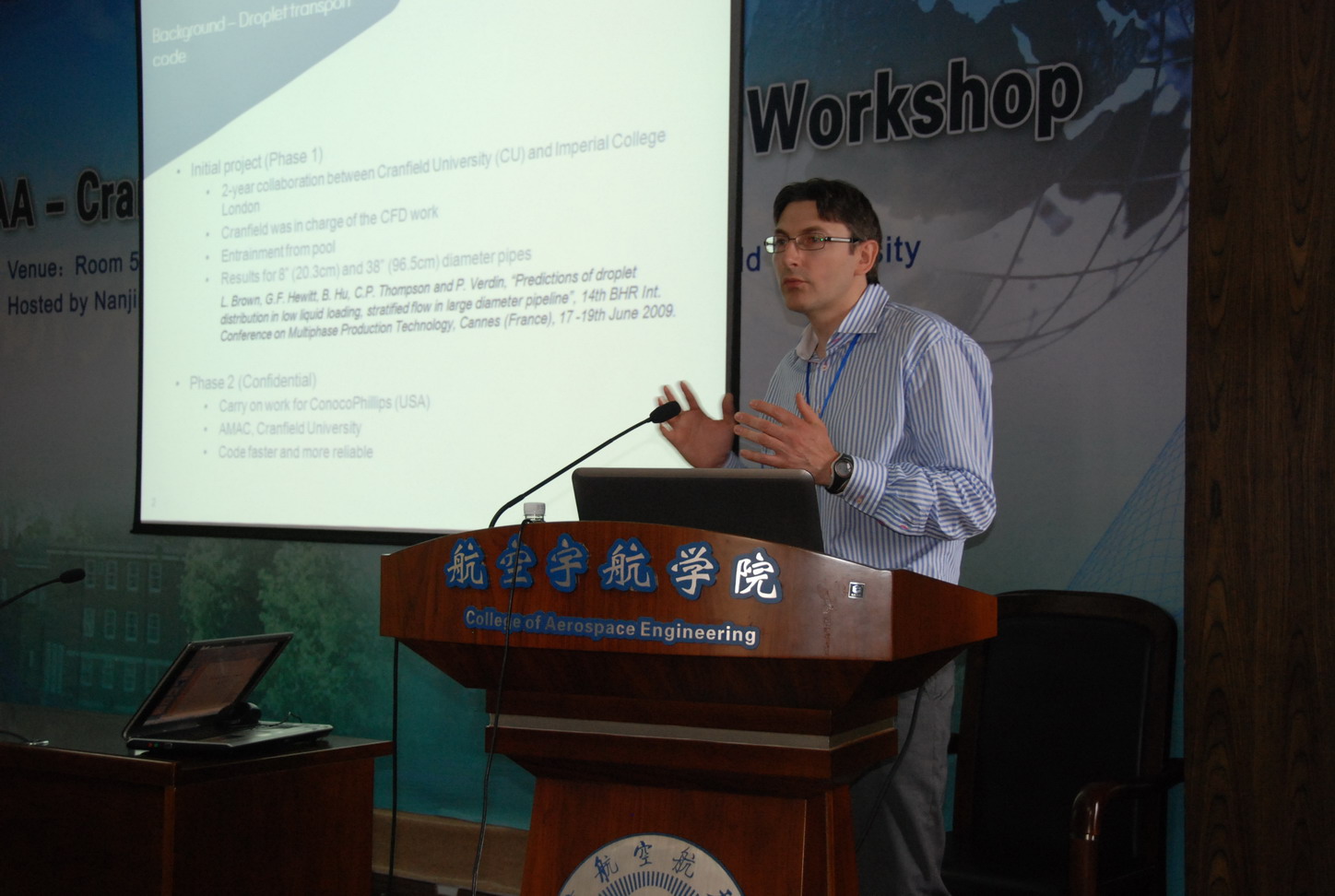 会议期间, 我校与Cranfield大学就国内外航空航天领域热点关注的飞行器结冰,飞行器结构与载荷,优化设计等诸多领域展开了深入广泛的交流。其中英国Cranfield大学Rade教授做的关于超大载荷作用下的结构受力以及复合材料与结构设计的两个报告,深入浅出的介绍了Cranfield大学在该领域的先进研究成果与技术,为南航师生上了一堂生动的课。而我校的朱春玲教授代表她们的研究团队,做了飞行器结冰数值与实验研究的报告,该报告得到了Cranfield大学同行的一致好评。会后两个研究团队还就飞行器结冰的诸多难点进行了进一步深入的讨论。
