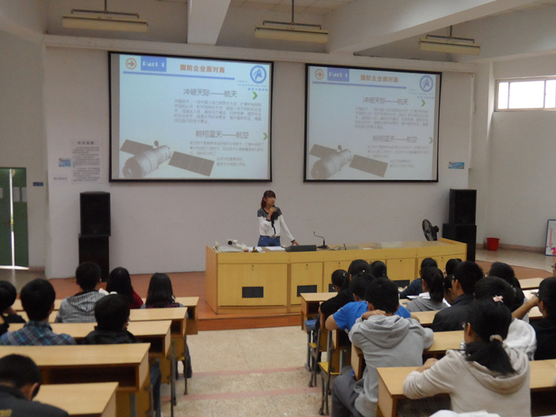 成果报告会则经过精心准备,主要面向刚刚开始职业规划启蒙的大二年级学生,从毕业生各专业就业情况、国防企业信息简介、人才素质需求、大学生生涯规划四方面以图文并茂的形式,用准确的数字进行了成果展示。并结合航宇学院特色,就航天及航空领域需求、研究生与本科生岗位、研究所与航空航天工厂的对比情况进行了重点讲解。