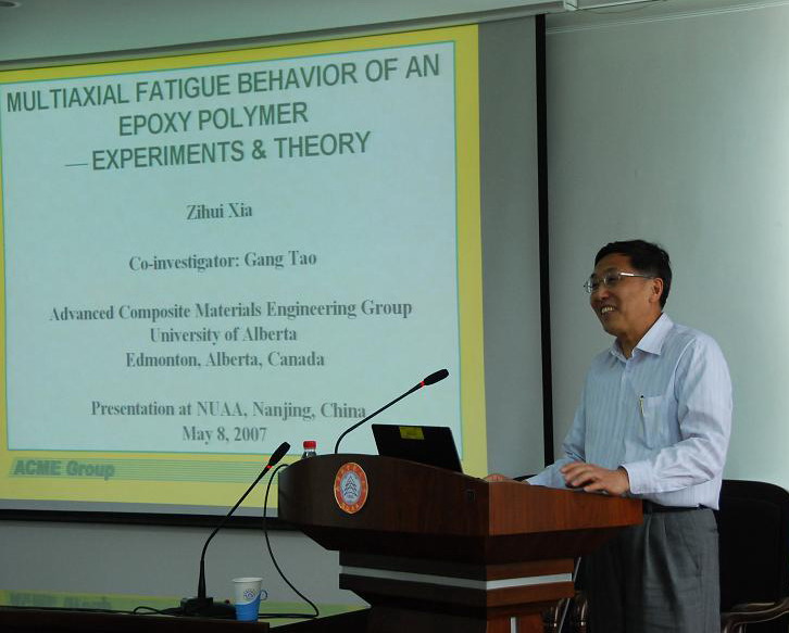 10月23日至24日,在航空宇航学院结构强度所会议室,夏子辉教授为我校师生作了两场学术报告,报告题目分别为“Damage mechanisms of clad pressure vessel (coke drum) based on global and local elastic-plastic analysis(基于整体-局部弹塑性分析的复合压力容器(焦炭塔)损伤机理研究)”和“Optimal section of coke drum material(焦炭塔材料的优选研究)”,报告介绍了他的课题组在压力容器损伤分析、寿命预测方面的理论研究和工程应用方面的最新发展状况,重点了介绍他们对于焦炭炉内局部点随机热疲劳方面的理论和试验方面的成功经验,并介绍了加拿大阿尔伯达大学机械工程系在与工业部门合作,联合申请立项和开展科研的情况。报告引起了与会师生的浓厚兴趣,师生们就某些问题与夏教授进行了热烈的讨论。航空宇航学院结构与强度研究所周储伟教授主持了报告会,航空宇航学院师生近五十人参加了报告会。