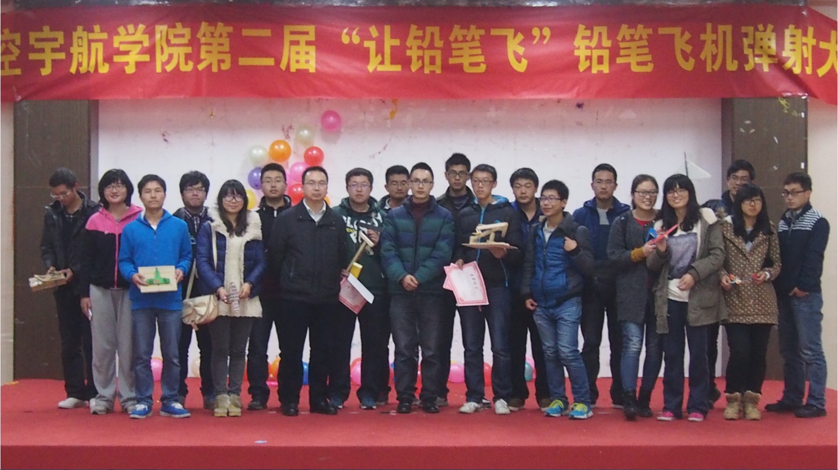 12月6日,航空宇航学院第二届“让铅笔飞”铅笔飞机弹射大赛在艺术中心多功能厅成功举办。航空宇航学院裘进浩教授、高亚东副教授、郑祥明副教授三位老师莅临现场担任本次比赛的评委。