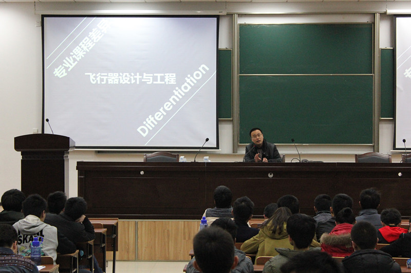 根据我校“飞行器设计与工程”专业各个方向的发展需求,同时为了更好的适应学生发展需要,从2012级飞行器设计与工程专业学生开始,学院实行自主双向选择专业方向制度。2014年3月10日于将军路校区D1-213报告厅,学院教学副院长沈星主持了“飞行器设计与工程”专业方向导航讲评会,为面临选择方向的同学们答疑解惑。