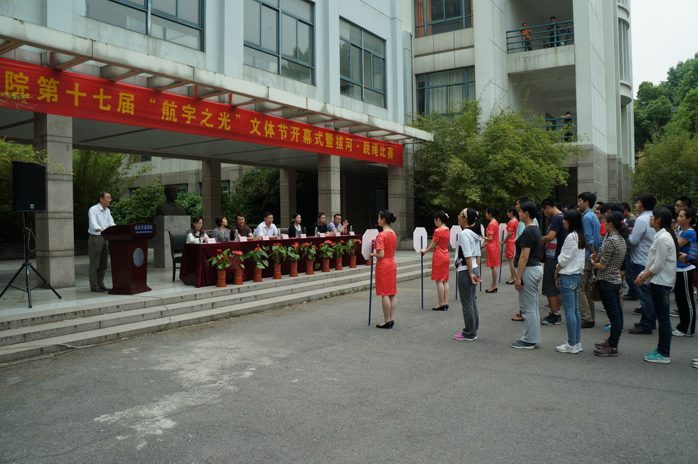5月16日下午,航空宇航学院第十七届“航宇之光”文体节开幕式暨“从一开始”拔河・跳绳比赛于明故宫校区18号楼前广场举行。学院党委书记李明成,院长赵宁,副院长陈国平、朱春玲、沈星,党委副书记王中叶,及学院教职工代表和学生代表参加了此次开幕式。校工会副主席褚峥也应邀参加。