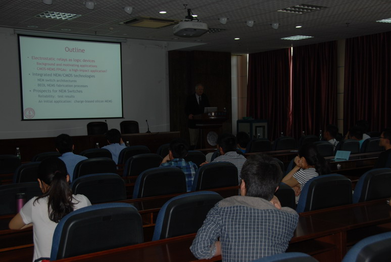 访问期间,做了题为“Electrostatic Nano Electromechanical Switches (NEMS) for Energy-Efficient Digital Systems”的学术报告,介绍了NEMS的最新进展,特别静电驱动在设计NEMS时起到的关键作用。