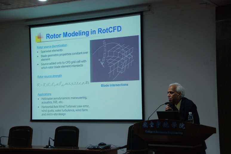 访问期间,Ganesh Rajagopalan教授为我校师生做了题为“Advancements in Computational Fluid Dynamics for Rotor Applications”的学术报告。报告内容涉及旋转机械如直升机旋翼、风机、螺旋桨、涵道风扇等的流场特性和运转特性,重点讲述了直升机旋翼CFD高效计算方法。讲学结束后,Ganesh Rajagopalan教授还与航空宇航学院直升机系的师生们开展了深入的讨论,从讨论中加深了对于这一国际前沿领域的了解。