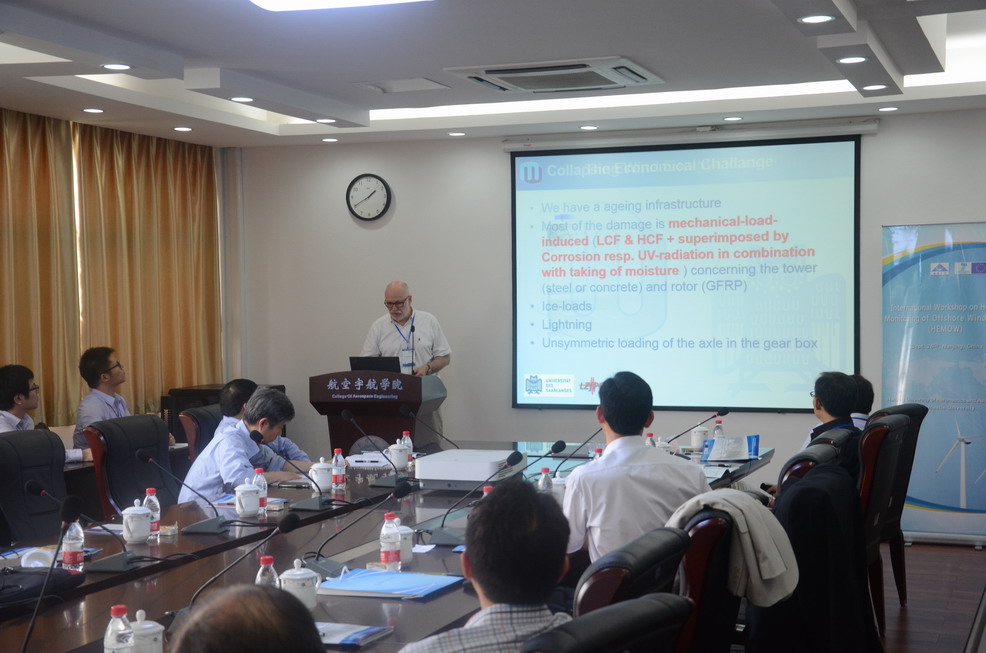 2014年9月26日,在欧盟第七框架协议国际研究交流计划(FP7 International Research Staff Exchange Project of Health Monitoring of Offshore Wind Farms (HEMOW))和国家自然科学基金委的支持下,由英国365集团和英国纽卡斯尔大学共同主办,英国365集团承办的“近海风电装备健康监测国际研讨会(International Workshop on Health Monitoring of Offshore Wind Farms)”在我校机械结构力学及控制国家重点实验室顺利召开。