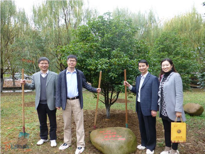 访问期间,成会明院士在将军路校区做了题为“石墨烯的可控制备及应用探索研究”的学术报告。首先对沈阳金属所做了简要的介绍,之后重点介绍了他近年来在石墨烯方面的研究情况,从石墨烯的制备到其电性能的测试,以及它在工业上的应用进行了详细的阐述。从报告中,可以深刻感受到他在科学研究时一丝不苟的精神和理论联系实际的作风。成会明院士在如何将仅有一个原子厚度的石墨烯薄片做成宏观的材料而不改变它的结构这个问题上,举了平时做饭时,在汤的表层因为液态对薄片的张力而自由的凝聚在一体的那层成分的例子,告诫同学们要学会在生活中发现问题,将它联系应用到平时的科研中来,这点给在座同学很大启发。在最后的交流环节,热情的同学们提出了各种各样自己感兴趣的问题,成会明院士都做了详细认真的解答。会后,成会明院士还在“院士林”手植挂花一株。