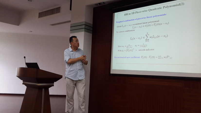 应我校航空宇航学院赵宁教授邀请,美国圣母大学应用和计算数学系许志良教授于2015年6月15日至7月12日来我校进行了学术访问,并于6月26日为我校师生做了题为“RKDG method with conservation constraints and hierarchical reconstruction limiter for solving conservation laws”的学术报告,赵宁教授主持了此次报告。