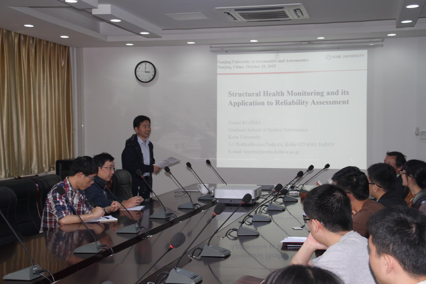 应我校机械结构力学及控制国家重点实验室裘进浩教授邀请,日本神户大学系统情报学研究科Fumio KOJIMA教授于2015年10月19日至22日访问了我校,并于10月20日为我校师生做题为“Structural Health Monitoring and Its Application to Reliability Assessment”的学术报告。