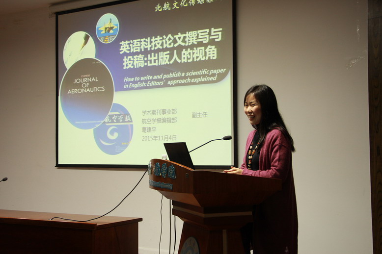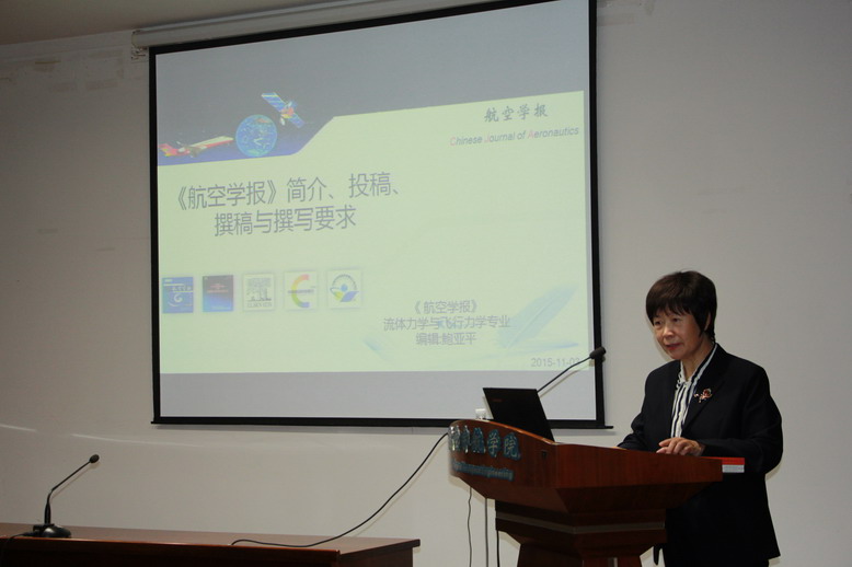 11月4日上午,在明故宫校区A18-529报告厅,鲍亚平编辑为我校师生做题为“《航空学报》简介、投稿、撰稿与撰写要求
