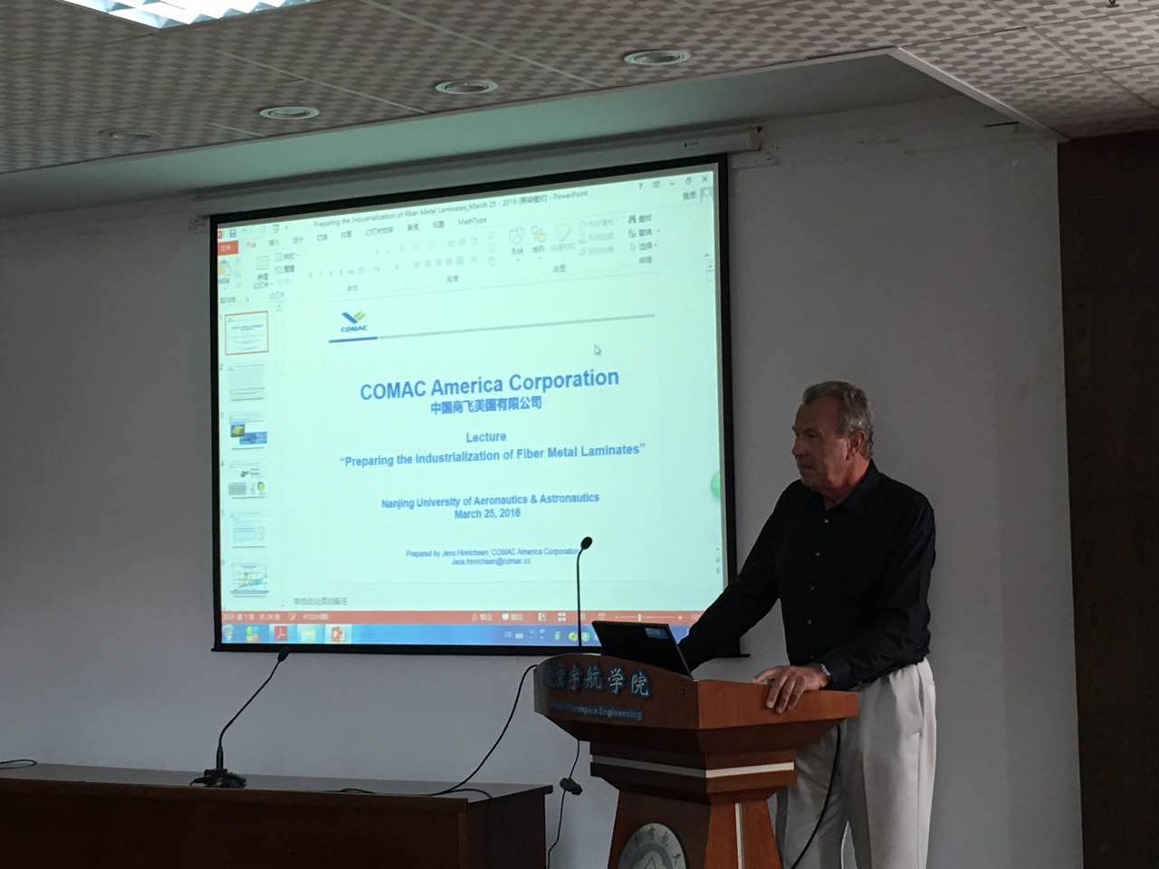 应我校航空宇航学院孙建红教授邀请,中国商用飞机有限责任公司美国公司工程与项目主管Jens Hinrichsen与高级工程师Marius Florican于2016年3月23日来我校交流访问。两位专家过去长期工作于Beoing、Airbus公司,分别参与了A380和Beoing787的研发,在工程、制造、产品以及研发方面有着丰富的经验和深入的研究。3月23日下午分别为我校师生做了题为“Preparing the Industrialization of Fiber Metal Laminates(纤维金属层压板的产业化)”与“Finite Element Simulation in Aerospace Industry(航空工业中的有限元模拟)”的学术报告。航空宇航学院副院长沈星教授主持了报告会。