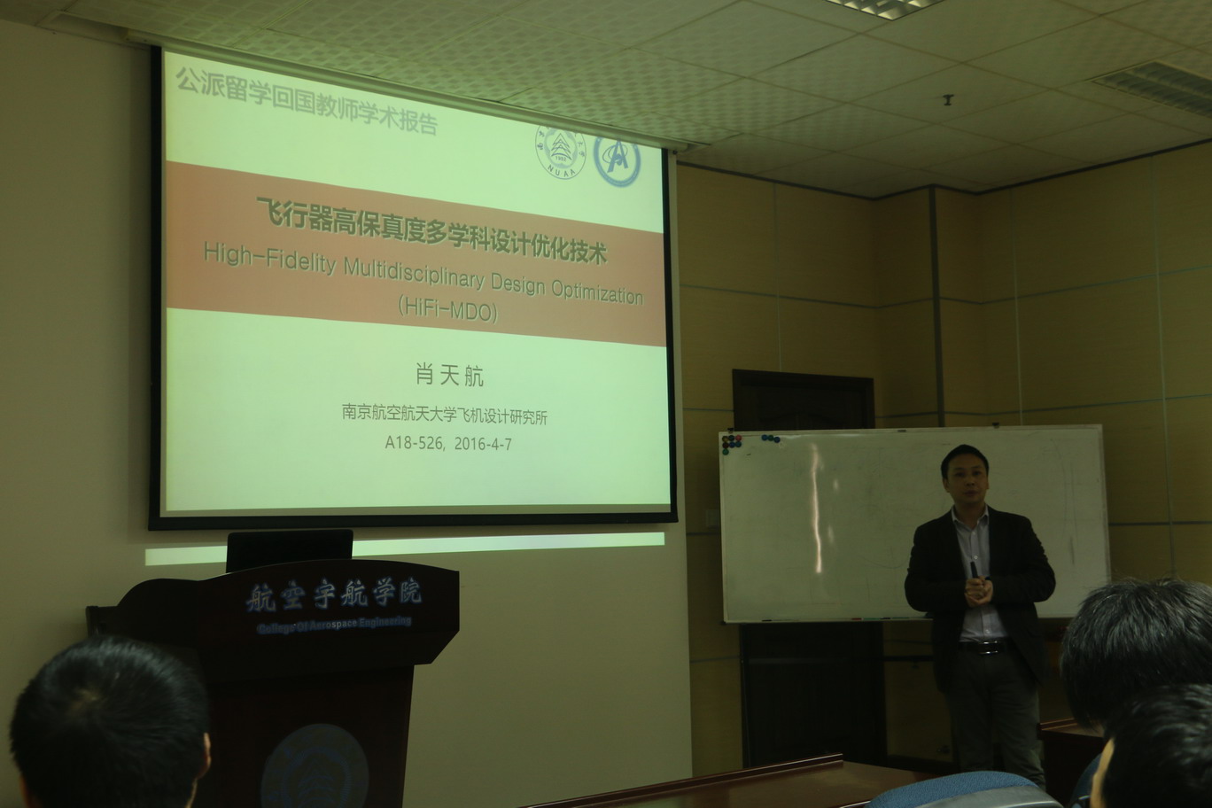 按照校人事处关于公派留学回国教师的要求,航空宇航学院飞行器系肖天航副教授于2016年4月7日为我校师生作了题为“飞行器高保真度多学科设计优化技术”的学术报告。报告总结了其在留学期间所开展的气动数值模拟方法方面的研究工作;结合国际发展动态,介绍和评述了飞行器高保真度多学科设计优化技术及研究现状、面临的挑战和发展趋势。