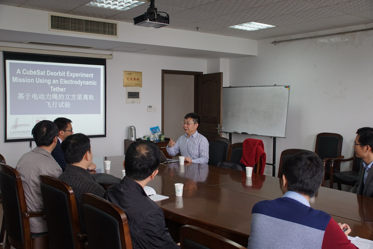 应我校机械结构力学及控制国家重点实验室副主任金栋平教授邀请,加拿大多伦多约克大学地球与空间科学工程学院朱正宏教授于2016年4月28日访问了我校,并为我校师生做题为“电动力绳作用下立方体卫星离轨实验A CubeSat Deorbit Experiment Mission Using an Electrodynamic Tether”的学术报告。报告内容丰富、生动、精彩,介绍了空间电动力绳系立方体卫星的实验进展,对我校相关科研工作具有借鉴作用。同时,朱正宏教授还结合自己多年的研究经历,讲述了空间绳系离轨技术等若干问题。文浩副教授主持了此次报告会。