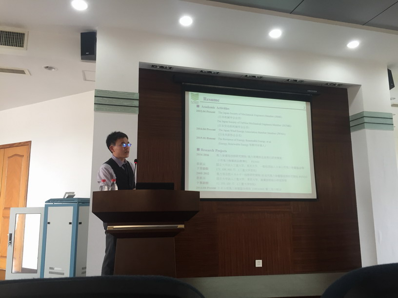 王同光教授邀请,日本国立三重大学李庆安研究员于2016年5月4日访问了我校,并为我校师生做题为“Study on aerodynamic forces and flow field of a straight-bladed vertical axis wind turbine”的学术报告,介绍了直线翼垂直轴风力机参数优化、风洞试验和外场试验等方面的研究成果,对我校风力机空气动力学研究工作具有借鉴作用。王同光教授主持了此次报告会。