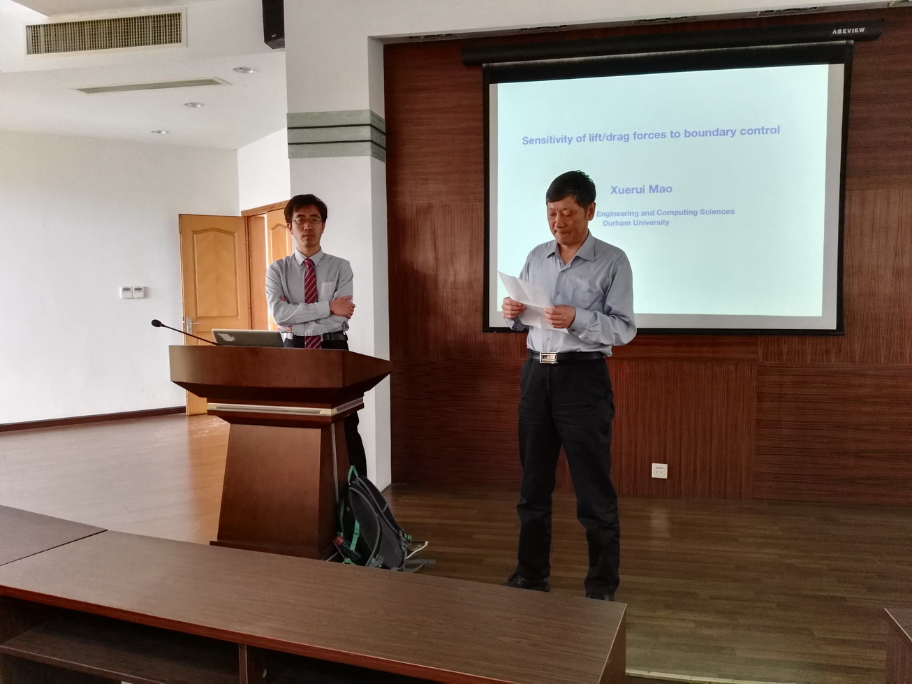 应我校江苏省风力机设计高技术研究重点实验室主任王同光教授邀请,英国杜伦大学涡轮机械及流体力学系讲师Xuerui Mao博士于2016年5月17日至18日访问了我校,并于5月18日为我校师生做题为“Sensitivity of forces with respect to surface perturbations in fluid flow”的学术报告。报告内容丰富、生动、精彩,介绍了翼型和圆柱等典型构型的升阻力对表面粗糙和摄动的敏感性问题,所采用的方法为直接数值模拟。相关研究内容对我校流体力学科研工作具有借鉴作用。同时,Xuerui Mao博士还结合自己多年的研究经历,讲述了流动控制和风电场的微尺度空气动力学等若干问题。王同光教授主持了此次报告会。