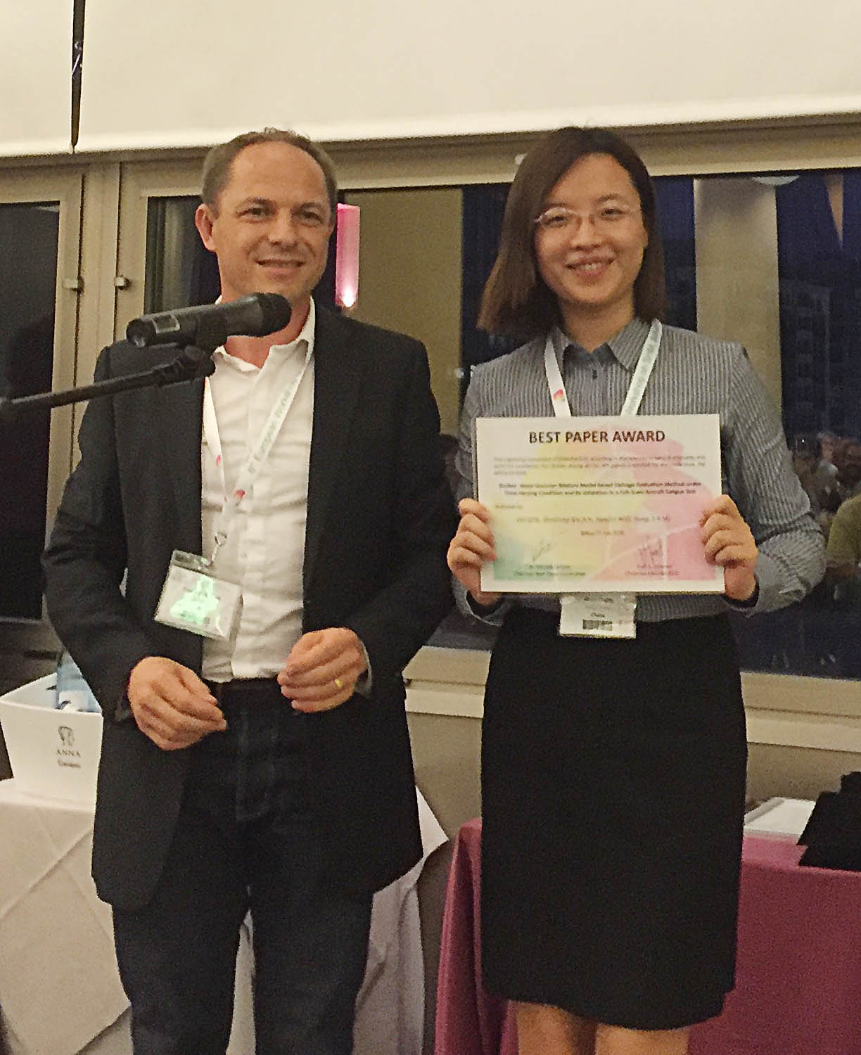 欧洲结构健康监测大会(EWSHM)与国际结构健康监测大会(IWSHM)并列为结构健康监测技术研究领域水平最高、最具影响力的国际会议,每两年在欧洲召开一次。EWSHM最佳论文奖是由34位结构健康监测技术领域的著名专家组成的最佳论文评选委员会评选并颁发给大会所有文章中质量最高且具有独特创新性的一篇文章。本届EWSHM共计投稿393篇文章,分别来自45个国家和地区、100多个学术机构,其中包括美国斯坦福大学、英国帝国理工大学、德国慕尼黑工业大学、东京大学、新加坡南阳理工大学、澳大利亚国立大学、韩国科学技术院等国际著名学术机构。