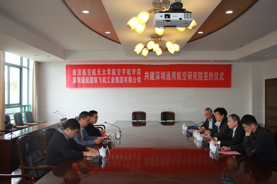 2016年10月17日上午,深圳通航国际飞机工业集团有限公司与英国365集团航空宇航学院共建深圳通用航空研究院签字仪式在18号楼511会议室举行。
