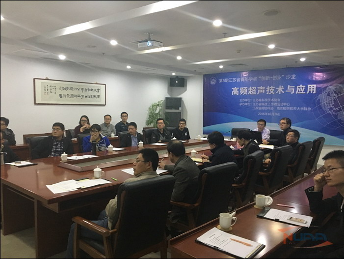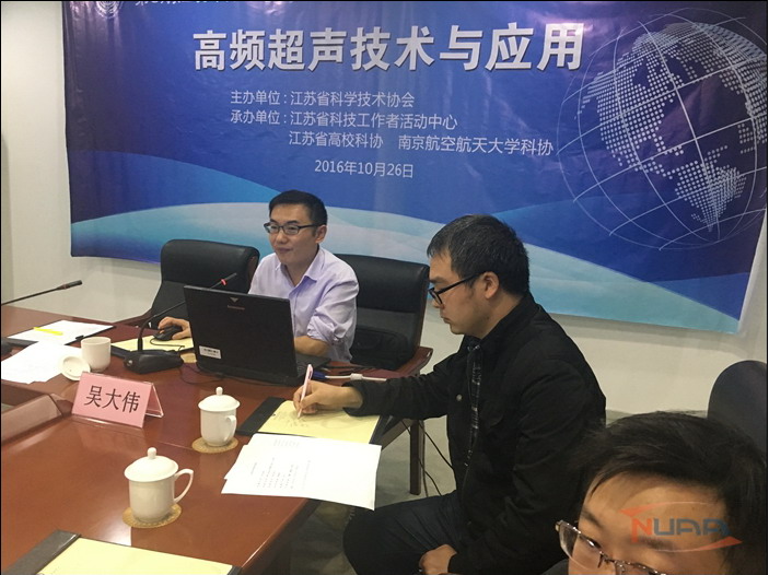 2016年10月26日下午3:00,第45期江苏省青年科学家科技沙龙暨南航青年教授讲坛在江苏省科技工作者活动中心拉开序幕,我校航空宇航学院博士生导师吴大伟教授作题为“高频超声技术与应用”的专题报告,来自全省各高校相关专业的青年学者积极参加了这次学术活动。