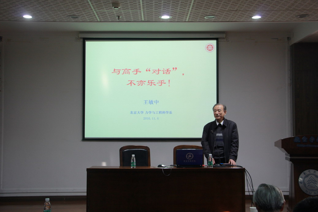 应我校机械结构力学及控制国家重点实验室高存法教授邀请,北京大学力学与工程科学系王敏中教授于2016年11月3日至7日访问了我校,并于11月4日为我校师生做了题为“与高手“对话”,不亦乐乎?”的学术报告。报告介绍了在过去几十年弹性力学基础理论的研究进展和学术讨论。报告结束后王敏中教授与在场的师生就相关领域的研究进行了交流和讨论。师生们认真聆听,踊跃提问,受益匪浅。