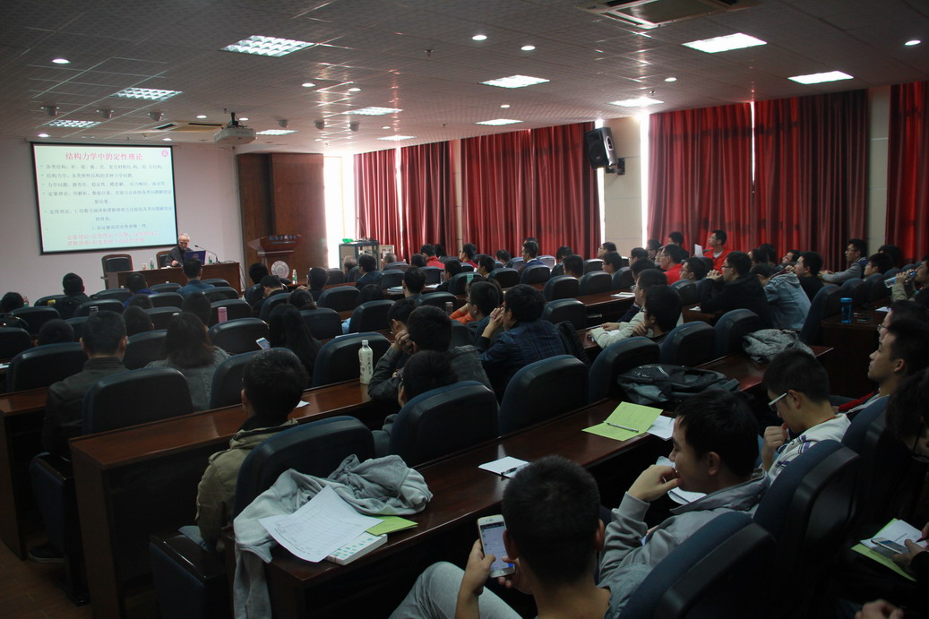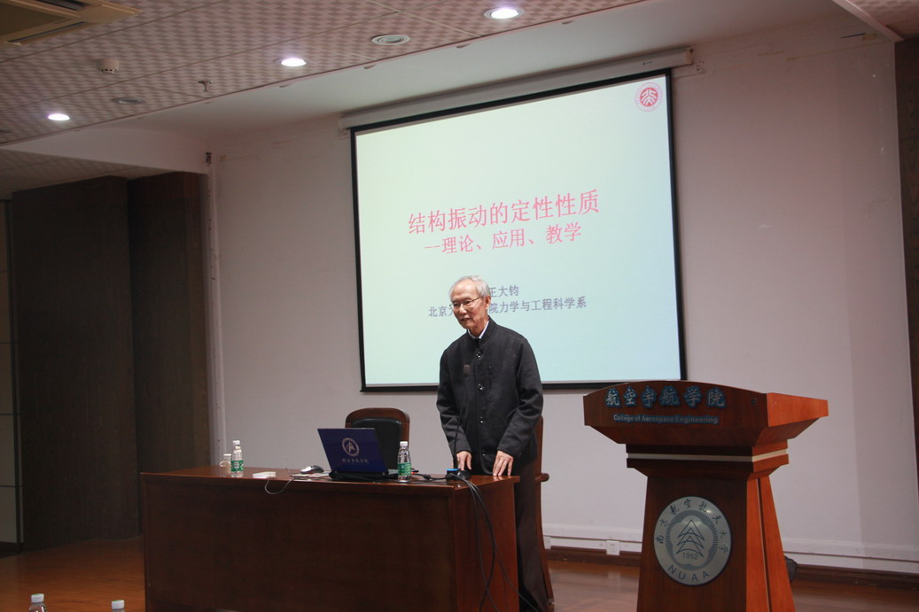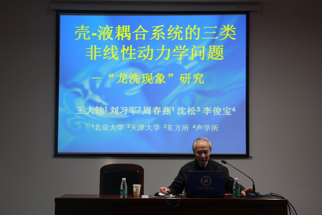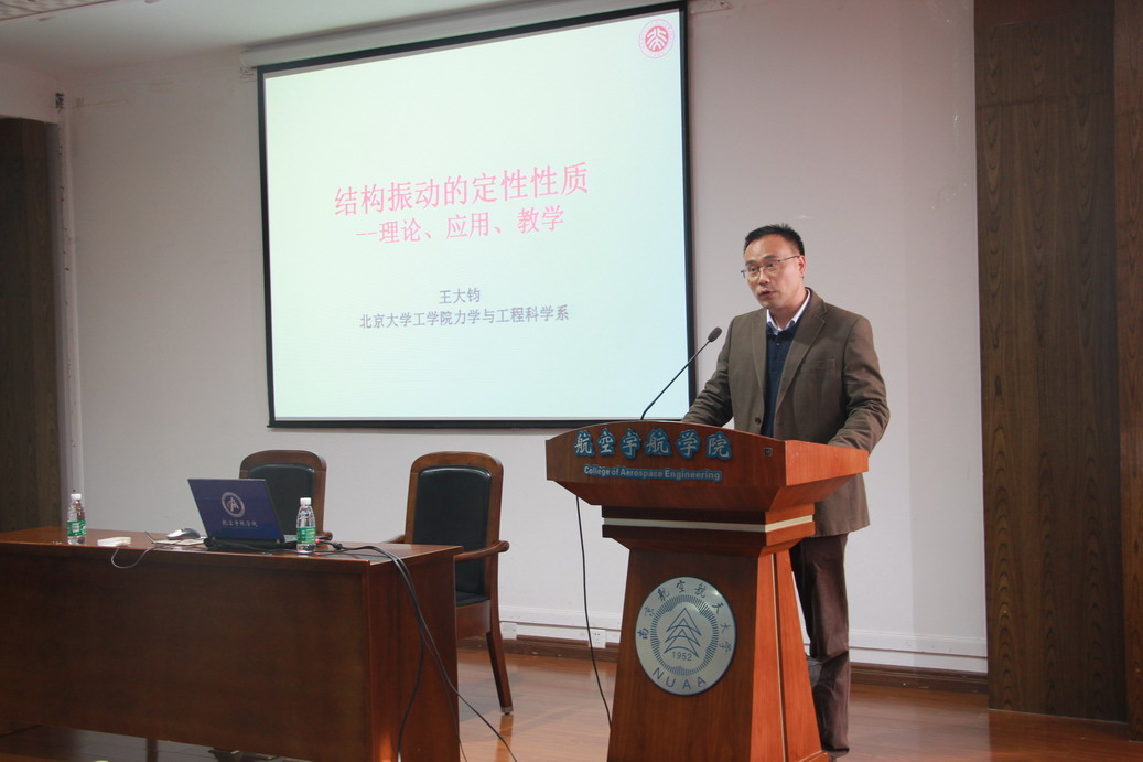 应我校机械结构力学及控制国家重点实验室高存法教授邀请,北京大学力学与工程科学系王大钧教授于2016年11月2日至6日访问了我校,并分别于11月3日、4日为我校师生做了题为“结构动力学中的定性理论”、“壳-水耦合系统的三类非线性动力学问题-源自中国古代文物龙洗”的学术报告。报告分别介绍了结构振动的定性性质的主要理论、在工程中的应用、与振动课教学中的科学美,及“龙洗现象”引发的三类非线性动力学问题,即:由搓振引起龙洗各种“喷水”形态�两个系统间由于摩擦引起的自激振动;弹性壳体内水的线性和非线性毛细�重力波;壳体受横向高频激励产生壳内低频大幅水波。报告结束后王大钧教授与在场的师生就相关领域的研究进行了交流和讨论。师生们认真聆听,踊跃提问,受益匪浅。