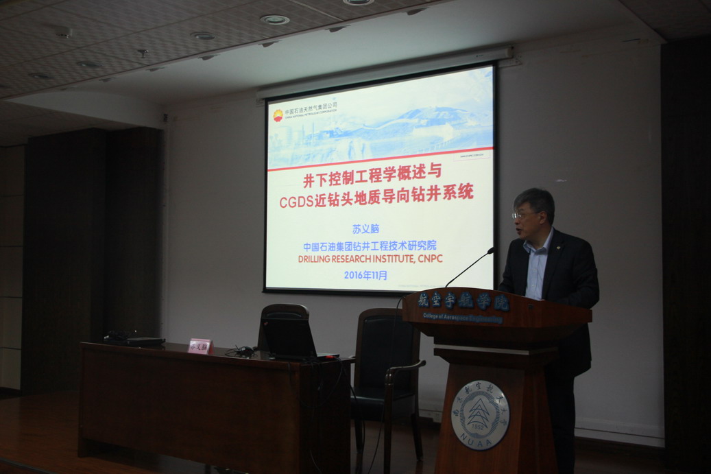 应中国振动工程学会邀请,中国工程院苏义脑院士于11月7日上午10点,在明故宫校区航空宇航学院报告厅做了题为“井下控制工程学概述与CGDS近钻头地质导向钻井系统”的学术报告,校长助理熊克教授主持了此次学术报告会。