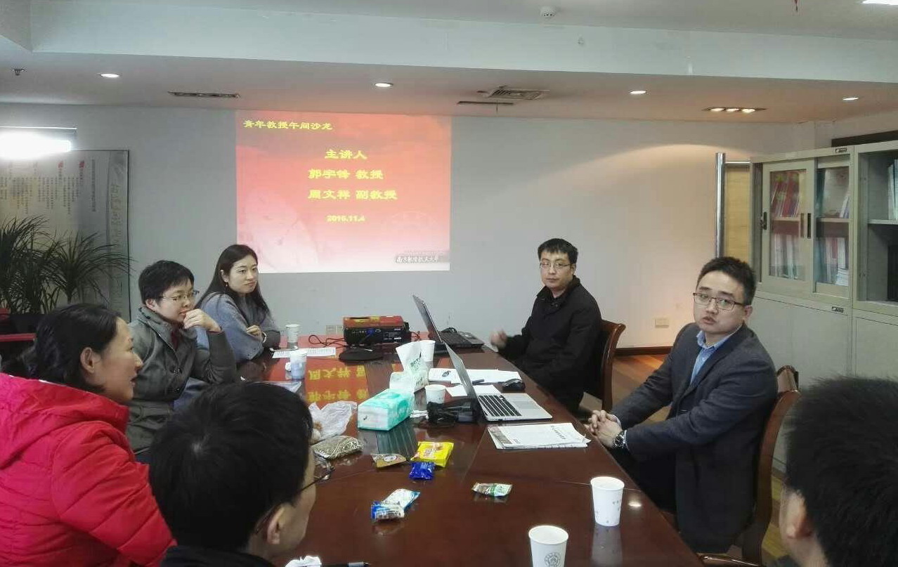 2016年11月4日中午,由我校青年教授学术交流联谊会,科协和能源与动力学院联合主办的青年教授午间沙龙在明故宫校区综合楼619室开展。本次沙龙由校科协刘双丽副秘书长主持,由郭宇峰教授和周文祥副教授主讲,来自航空宇航学院、能源与动力学院、航天学院等10余名青年教师和研究生代表参加了此次学术交流。