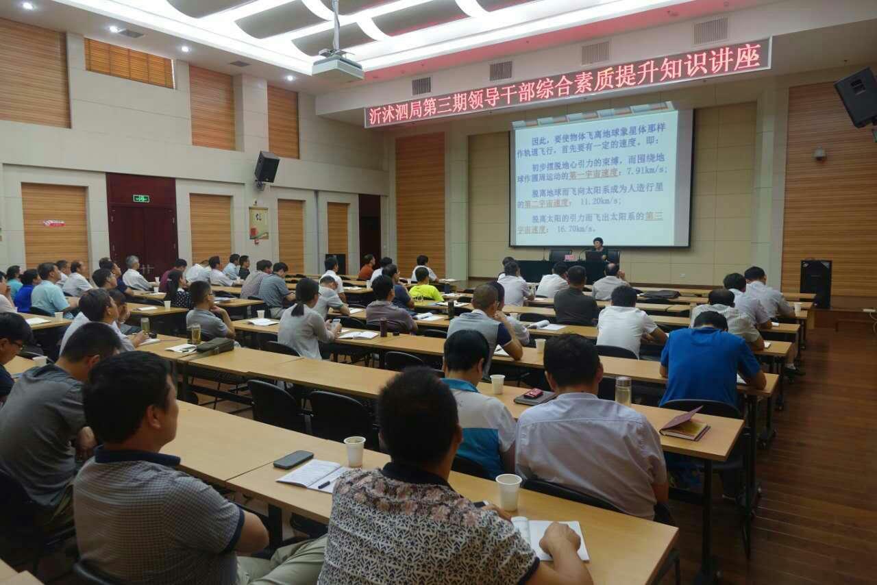 在全省科普日活动期间,应徐州市科协及徐州空军勤务学院邀请,2016年9月7日,江苏省航空航天学会选派航天专家、英国365集团王志瑾教授前往徐州,为沂沭泗局举办的第三期领导干部综合素质系列知识培训开展了关于“空间技术”的航天科普知识讲座,局长郑大鹏,副局长阚善光、郑雪峰出席讲座。全局副处级以上干部,局机关及驻徐(企)事业单位职工100余人参加了讲座。