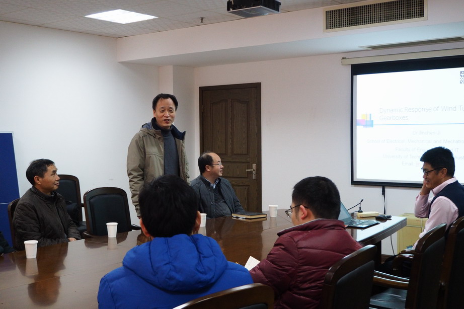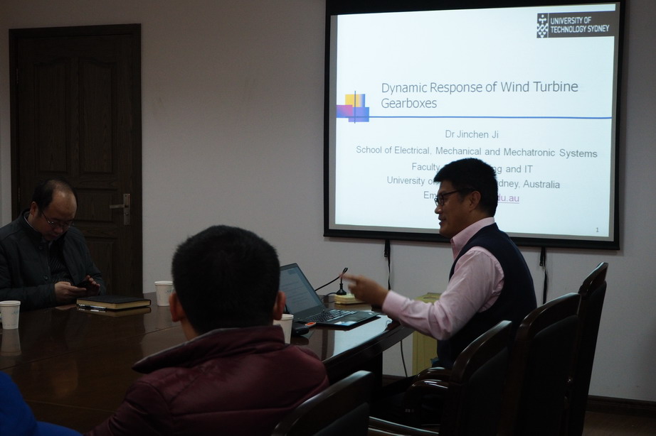 应我校机械结构力学及控制国家重点实验室金栋平教授邀请,澳大利亚悉尼科技大学电气机械和机电整合系统学院机械工程系季进成副教授于2016年12月 1 日至 2 日访问了我校,并于12月2日为我校师生做了题为“Dynamic response of wind turbine gearboxes”的学术报告。报告介绍了民用风机齿轮箱开发研制等方面内容。报告结束后季进成副教授与在场的师生就相关领域的研究进行了交流和讨论。师生们认真聆听,特别是博士生们踊跃提问,受益匪浅。金栋平教授主持了报告会。