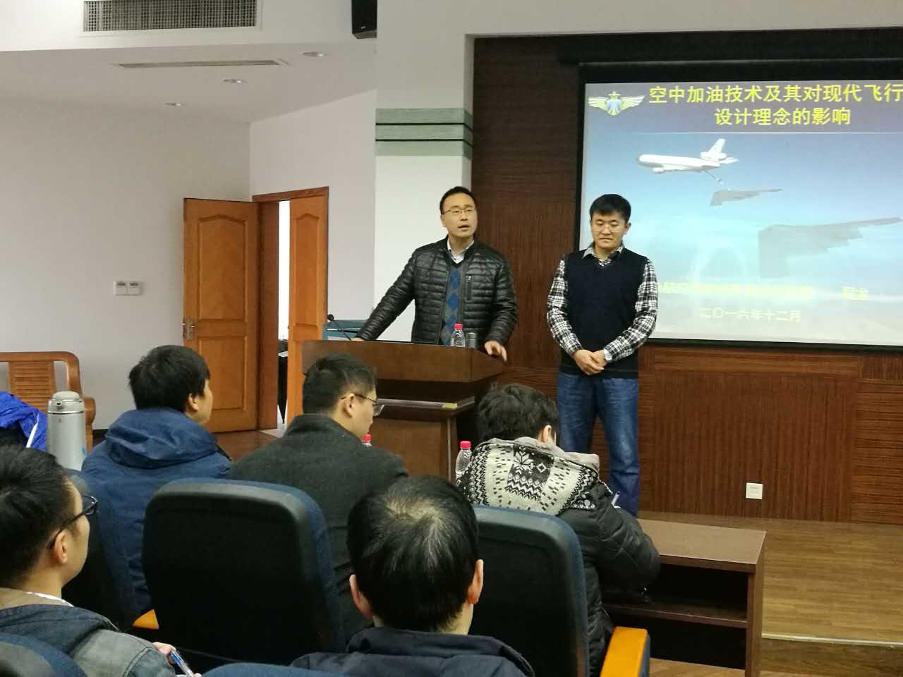 应我校航空宇航学院空气动力学系刘学强教授邀请,空军装备研究院高级工程师程龙于2016年12月12日至13日访问了我校,并于12月13日为我校师生做了题为“空中加油技术及其对现代飞行器设计理念的影响”的学术报告。报告介绍了空中加油技术细节及对部队作战的战略与战术意义等内容。报告结束后程龙与在场的师生就相关领域的研究进行了交流和讨论。师生们认真聆听,踊跃提问,受益匪浅。航空宇航学院副院长沈星教授主持了报告会。