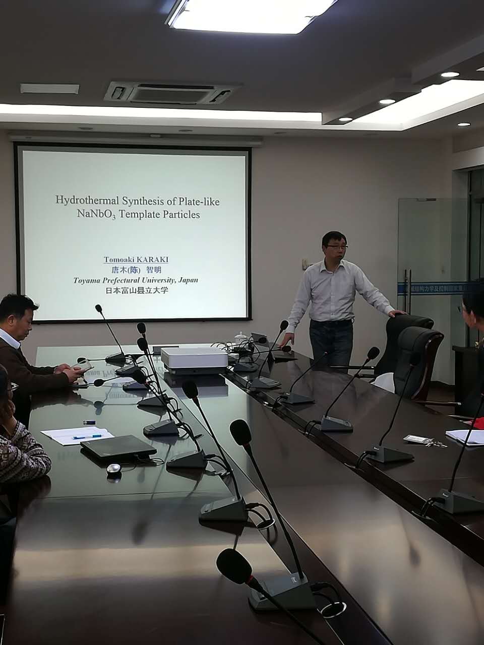 应我校航空宇航学院机械结构力学及控制国家重点实验室严康副教授的邀请,日本富山县立大学工学部KARAKI Tomoaki教授于2017年4月6日至7日访问了我校,并于4月6日为我校师生做了题为“水热法合成NaNbO3 片状粉体”的学术报告。报告介绍了日本的压电材料及器件的研究发展近况,日本富山县立大学在压电陶瓷粉体制备技术研究中取得的成果等方面内容。报告结束后KARAKI Tomoaki教授与在场的师生就相关领域的研究进行了交流和讨论。师生们认真聆听,特别是博士生们踊跃提问,受益匪浅。机械结构力学及控制国家重点实验室朱孔军教授主持了报告会。