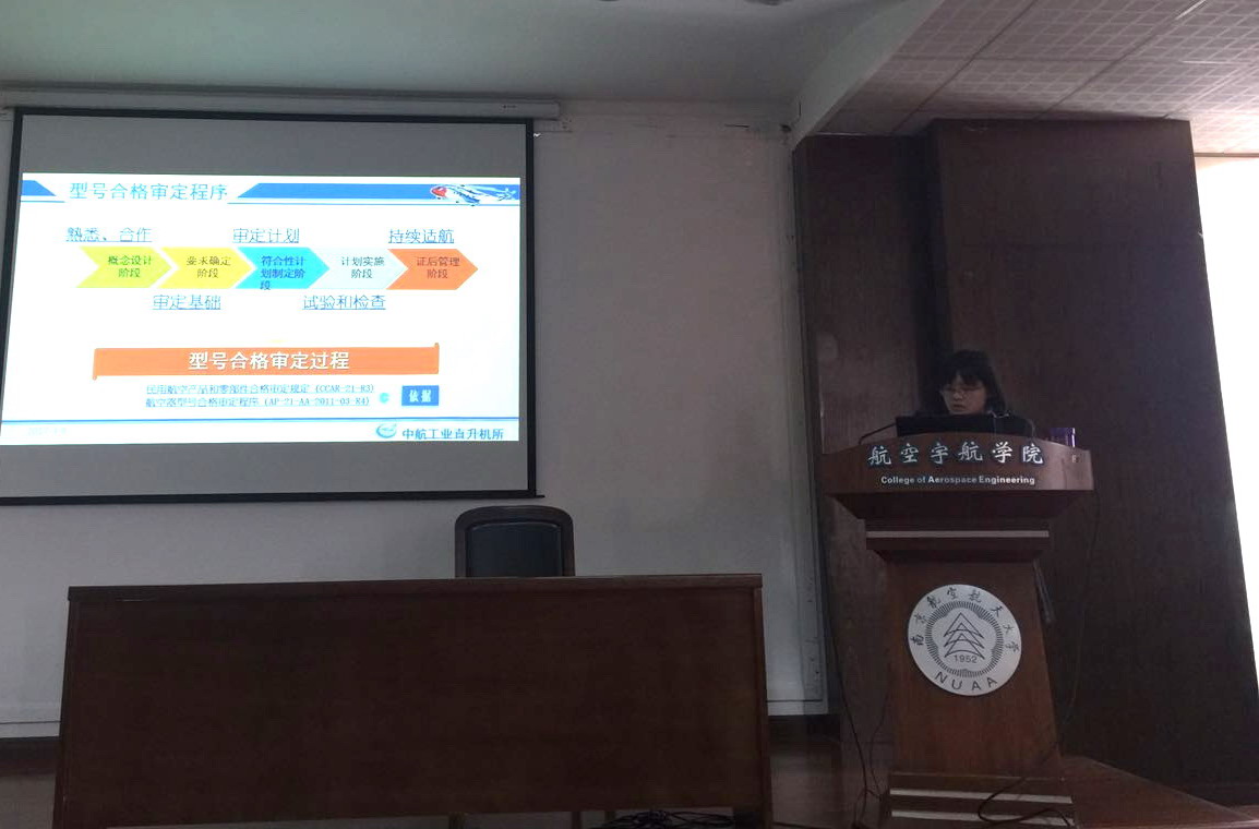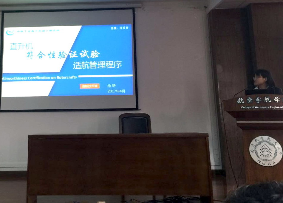 应我校直升机旋翼动力学国家级重点实验室徐锦法教授邀请,中国直升机设计研究所高级工程师徐新于2017年4月8日访问了我校,并为我校师生做题为“直升机符合性验证试验适航管理”的学术报告。报告内容丰富、生动、精彩,介绍了中国直升机设计研究所民用直升机适航取证的进展,对我校开展直升机适航技术科研工作具有非常大的借鉴作用。直升机系副主任朱清华副教授主持了报告。