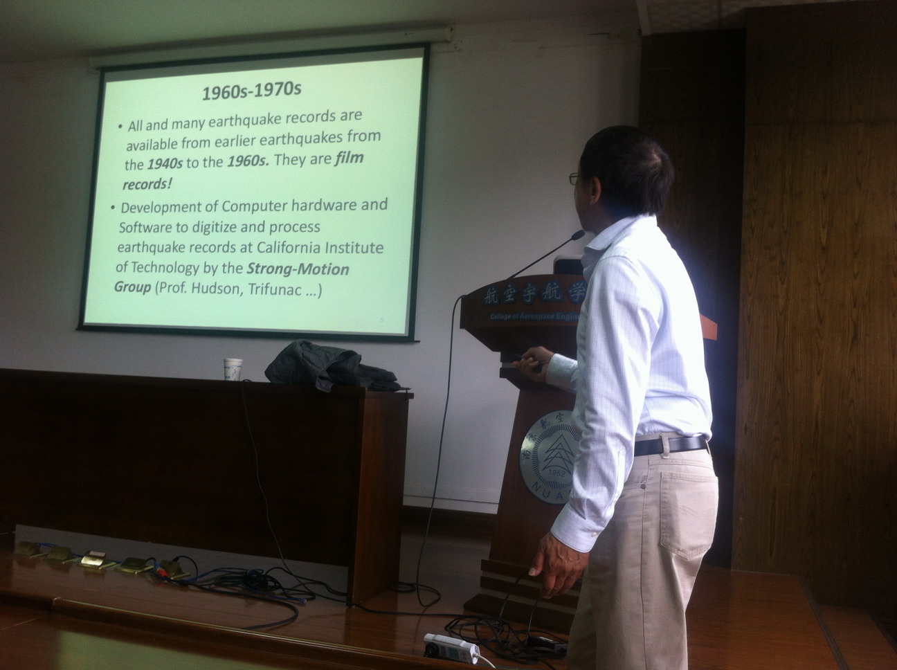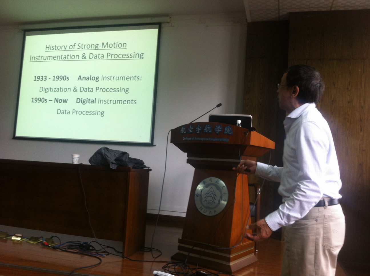 应我校航空宇航学院土木工程系陈少林教授邀请,美国南加州大学Vincent W Lee教授于2017年4月25日至26日访问了我校,并于4月26日为我校师生分别做了题为“Digitization and Data Processing of Strong-Motion Earthquake Accelerograms”及“Wave Diffraction in Layered media”的学术报告。报告内容丰富、生动、精彩,分别介绍了强震记录的处理的发展历程和相关技术,人工波的合成以及波在不规则层状介质中的散射等内容,对我校相关科研工作具有借鉴作用。陈少林教授主持了此次报告会。