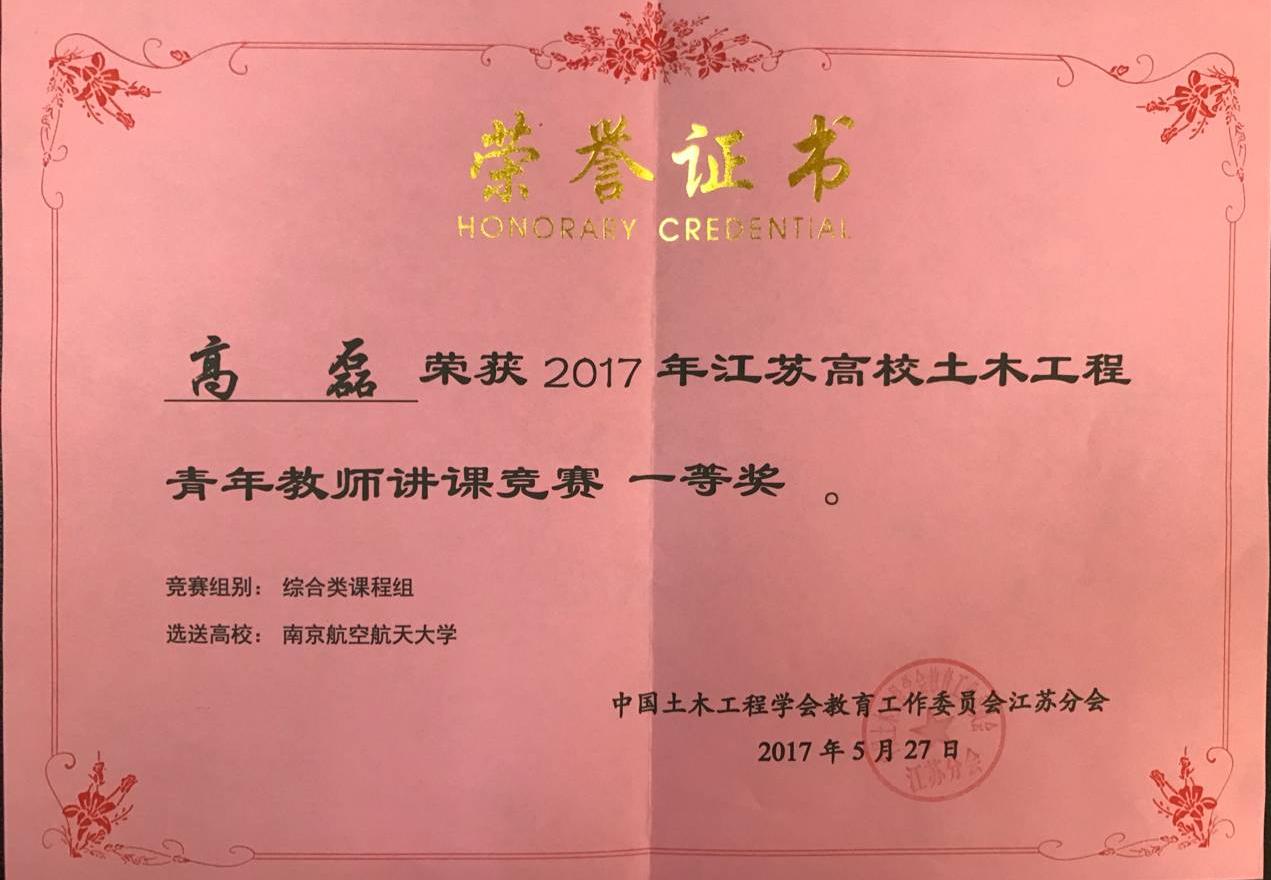 我院土木工程专业教师高磊获江苏高校土木工程青年教师讲课竞赛一等奖