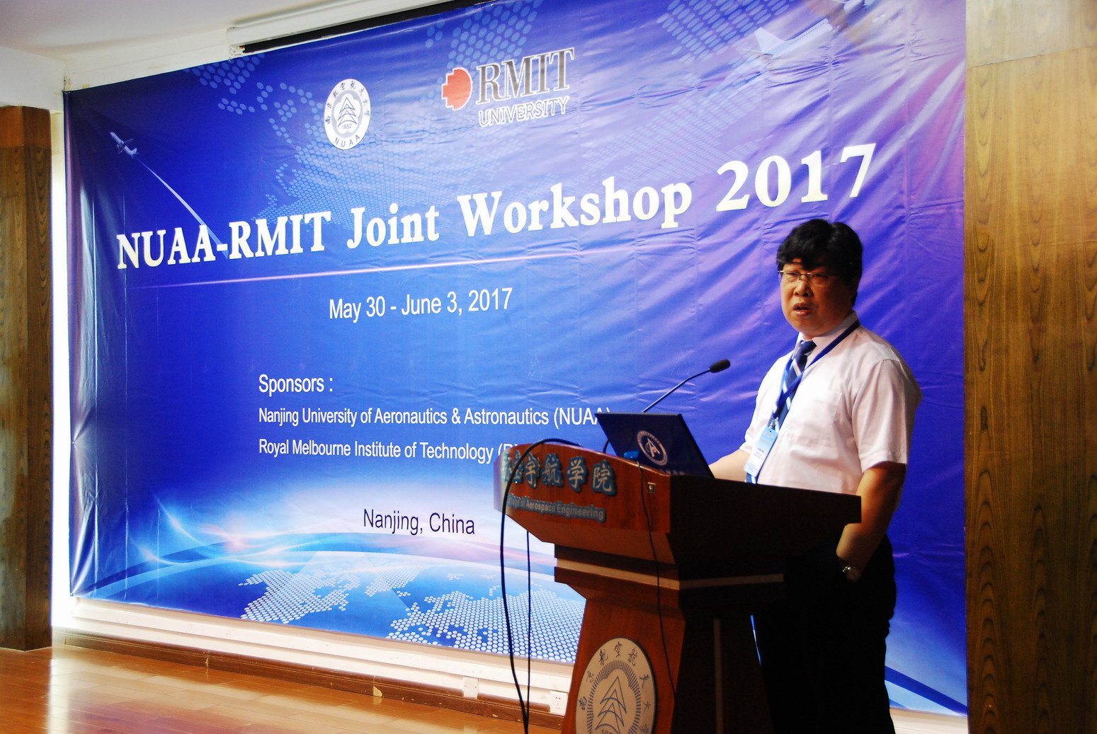 2017 NUAA-RMIT Joint Workshop于2017年5月30日至6月3日在南京举行。该论坛由英国365集团机械结构力学及控制国家重点实验室、航空宇航学院以及澳大利亚皇家墨尔本理工大学工学院联合主办。此次论坛的主题是先进航空航天材料的力学及健康监测领域的新进展。