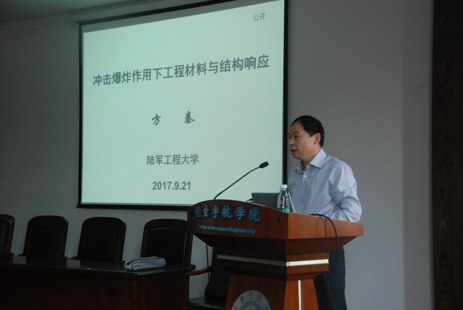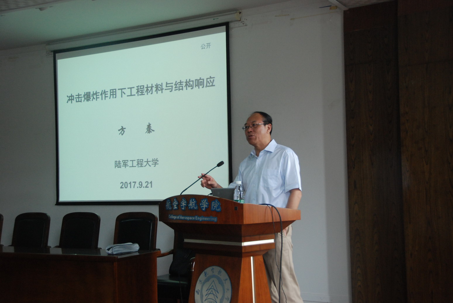 应我校航空宇航学院土木工程系余红发教授邀请,陆军工程大学副校长、少将军衔、防护工程学科首席教授、博导方秦教授于2017年9月21日访问了我校,并为我校师生做了题为“冲击爆炸作用下工程材料与结构响应”的学术报告。报告介绍了冲击爆炸下混凝土材料与结构性能的研究背景、研究方法、工程应用及取得的研究成果。报告内容丰富、生动、精彩,对我校相关科研工作具有重要借鉴作用。同时,方秦教授还结合自己多年的研究经历,讲述了从事科学研究方面的体会,分享了研究心得。航空宇航学院院长夏品奇教授主持了此次报告会。