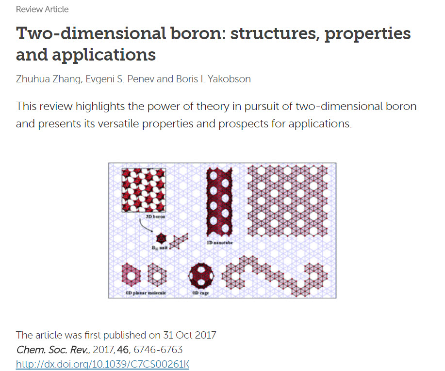 尽管体块硼不具备石墨那样的层状晶体结构,早期的理论预测硼可形成二维单原子层晶体结构。然而,因为硼烯的亚稳性和结构多样性,其实验合成极具挑战。在长期的理论研究指导下,经过十多年的探索发展,最近两个独立的实验成功在银基底上合成了单原子层的硼烯,在国际学术界掀起了硼烯的研究热潮。我校机械结构力学及控制国家重点实验室张助华教授与美国莱斯大学讲席教授Boris I. Yakobson合作,围绕硼结构的尺度依赖、硼烯基态的环境依赖、合成途径和条件的复杂与苛刻以及实验是如何借助理论成功合成硼烯等方面系统综述了硼烯的研究进展,分析了未来可能的发展方向,为硼烯的研究绘制了一幅清晰的发展蓝图。该论文特别强调了理论研究在硼烯实验实现过程中的引领性作用,彰显了理论研究在设计和创造新材料过程中的重要角色。最后,论文提出了硼烯的可控转移技术和大面积合成方法两大挑战性问题,给出了可能的解决思路,并对硼烯的性质和潜在应用进行了全面的归纳和展望。